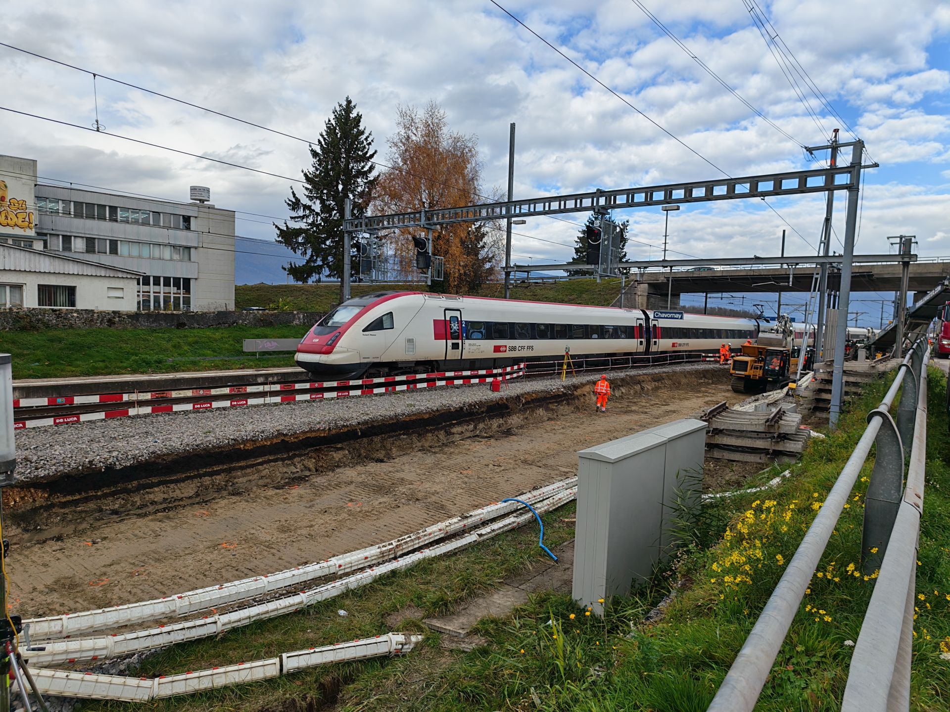 Im Rahmen des Projekts zur Änderung der Verbindung zwischen der SBB-Linie und der Travys-Linie Orbe-Chavornay müssen im Bahnhof Chavornay (VD) umfangreiche Arbeiten zur Anpassung des Gleisplans durchgeführt werden. Am Wochenende vom 15. bis 16. November 2025 wurde eine erste Phase intensiver Arbeiten durchgeführt, bei der rund 150 m Gleisinfrastruktur saniert und eine neue Weiche eingebaut wurden. Diese Arbeiten wurden im Rahmen einer 52-stündigen Blitzaktion durchgeführt, wobei der Bahnbetrieb auf der Strecke aufrechterhalten blieb.